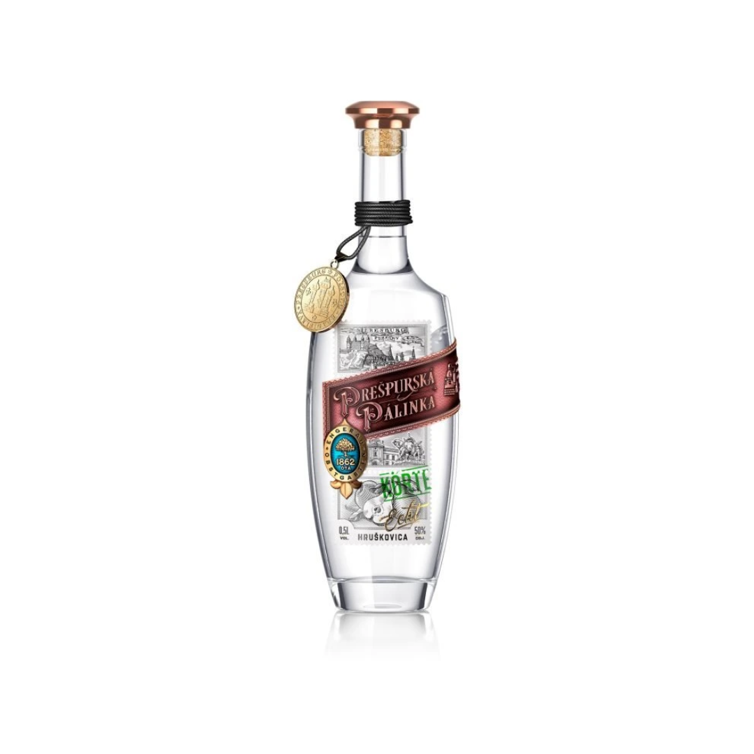 Prešpurská Pálinka Hruškovica je ovocný destilát vyrobený zo starostlivo vybraných hrušiek. Tento destilát stelesňuje tradíciu pálenia ovocia — výsledkom je silná, čistá a výrazná hruškovica, ktorá osloví milovníkov autentických domácich páleniek.